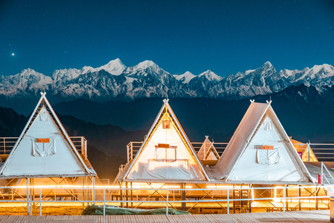 1、牛背山住宿可升级球形大帐篷独卫,如帐篷酒店满房的情况,我们则安排至:牛背山星铂酒店box房型,标间独卫。