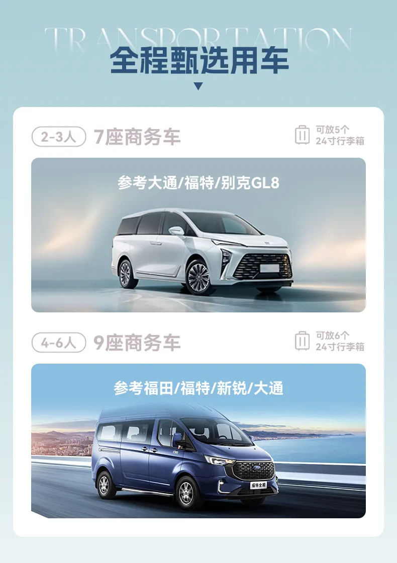 1,如需要接机或者接站,请于出发前2天给到客服人员具体的航班班次信息,不接受临时安排,无航班号则默认为自动放弃接机/接站服务。
