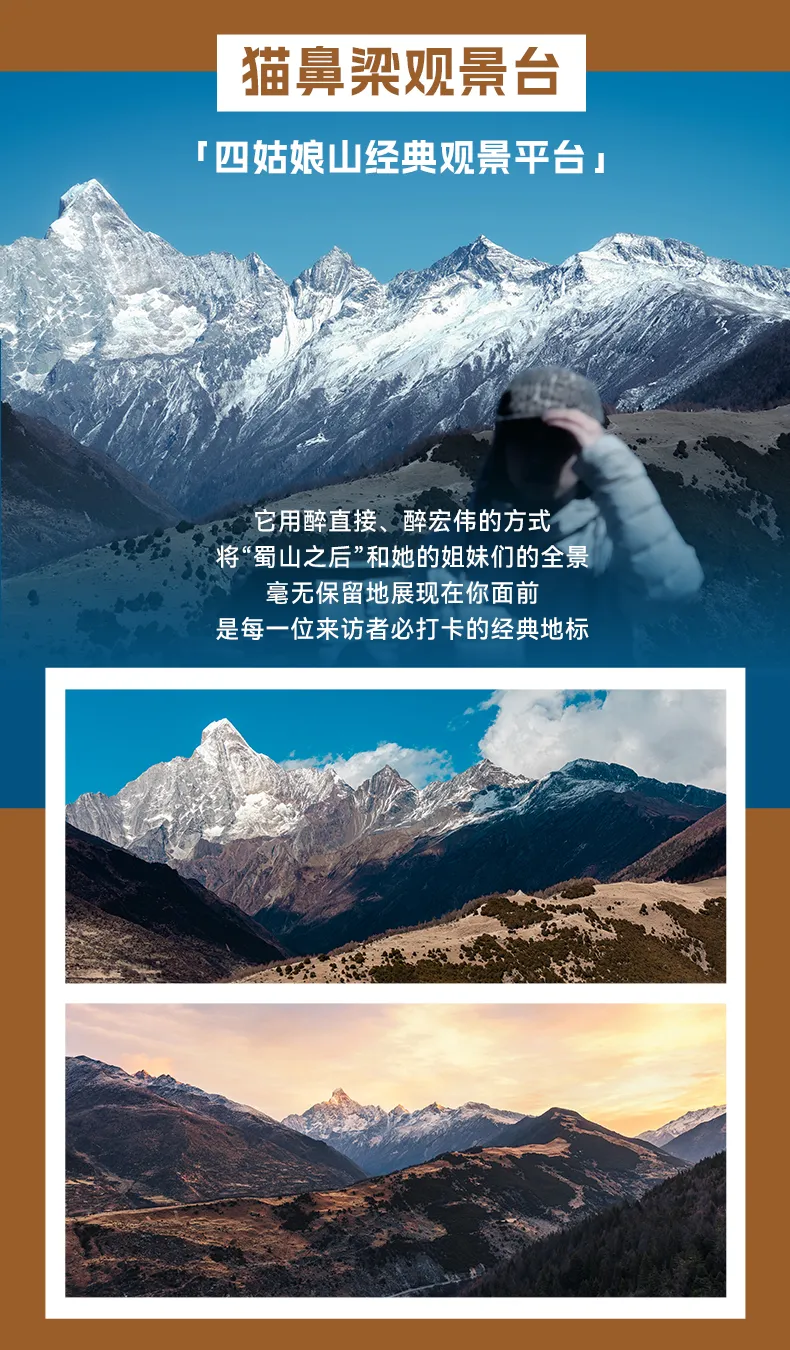 ▷ 海拔变化:成都500米 → 猫鼻梁3200米 → 双桥沟2900~3800米 → 丹巴1800米