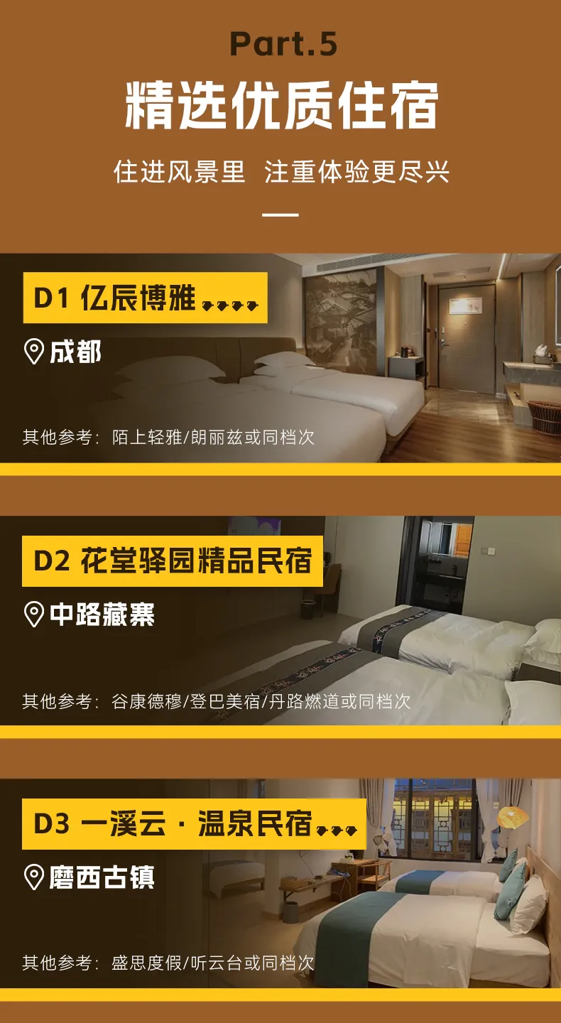 2.到酒店后报“川西小环线+姓名”拿房,房费已付,如需房间押金请自理;