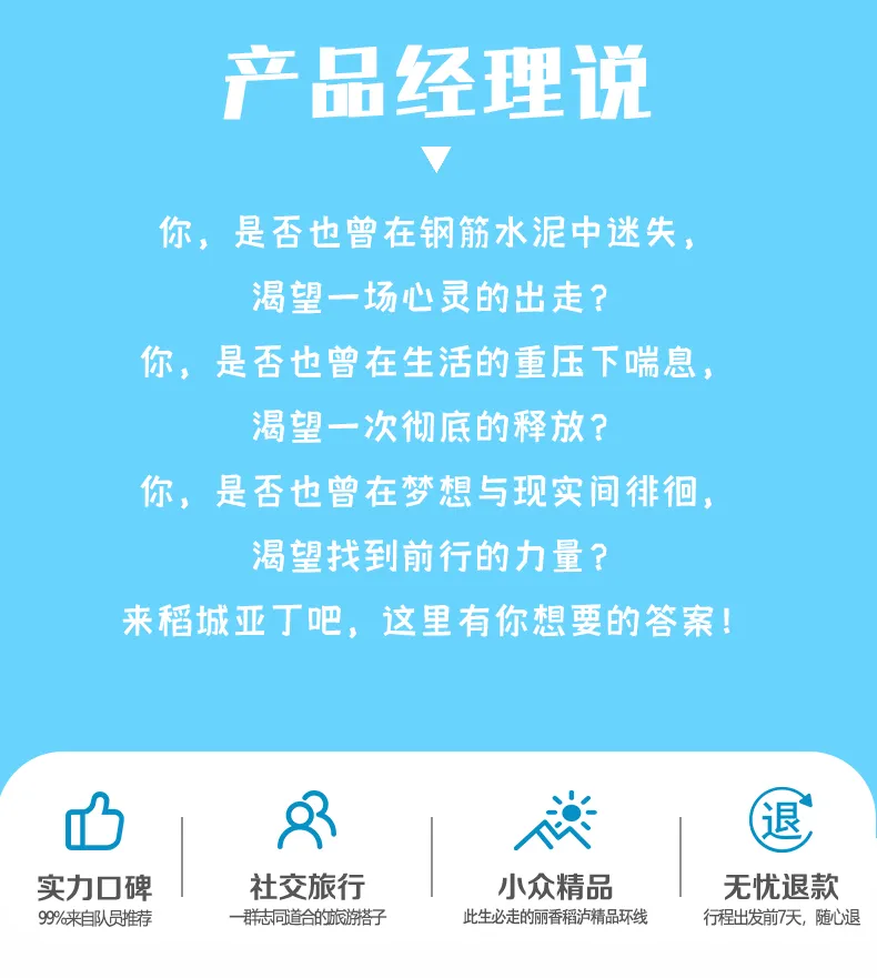 ▷注:报名前请提前咨询客服是否有余位,若您的出行日期和以上团期不一致,可以联系我们的客服为您单独订制小团出行!