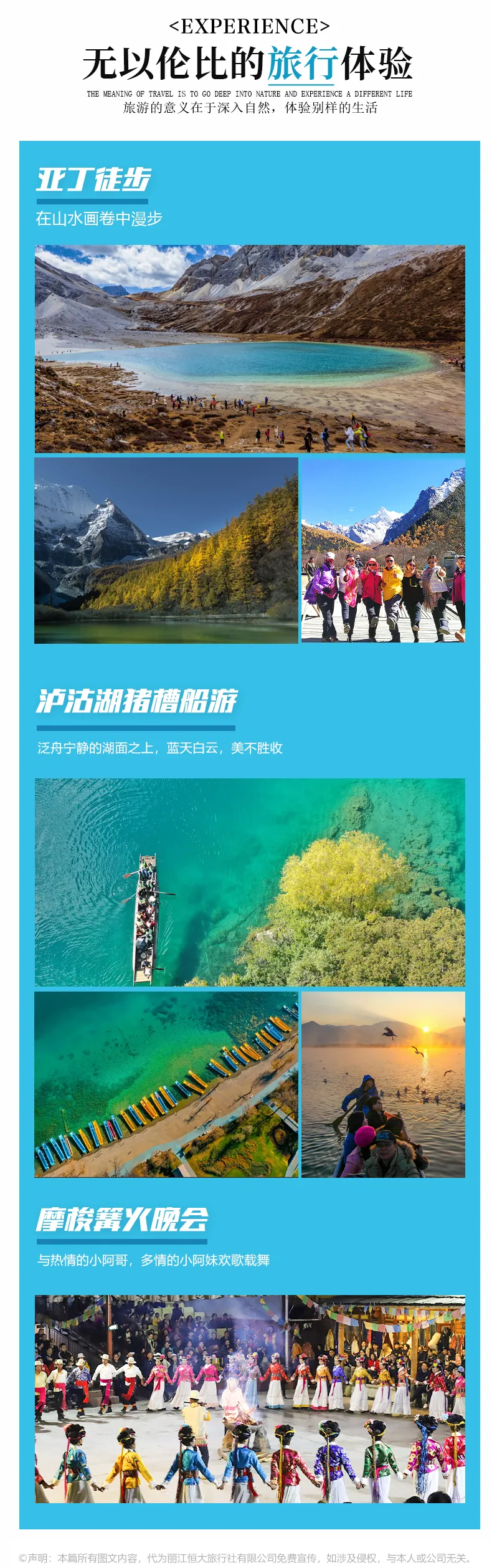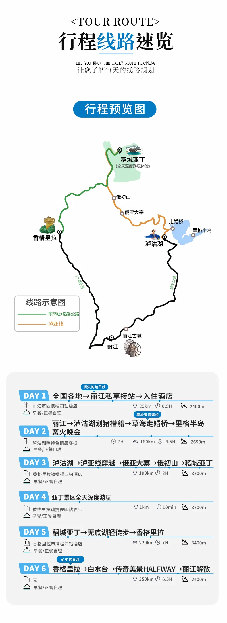 ▷交通:不包含各地到达丽江集散的往返大交通费用(如:机票和高铁火车票等,提前预定通常折扣都会很低);