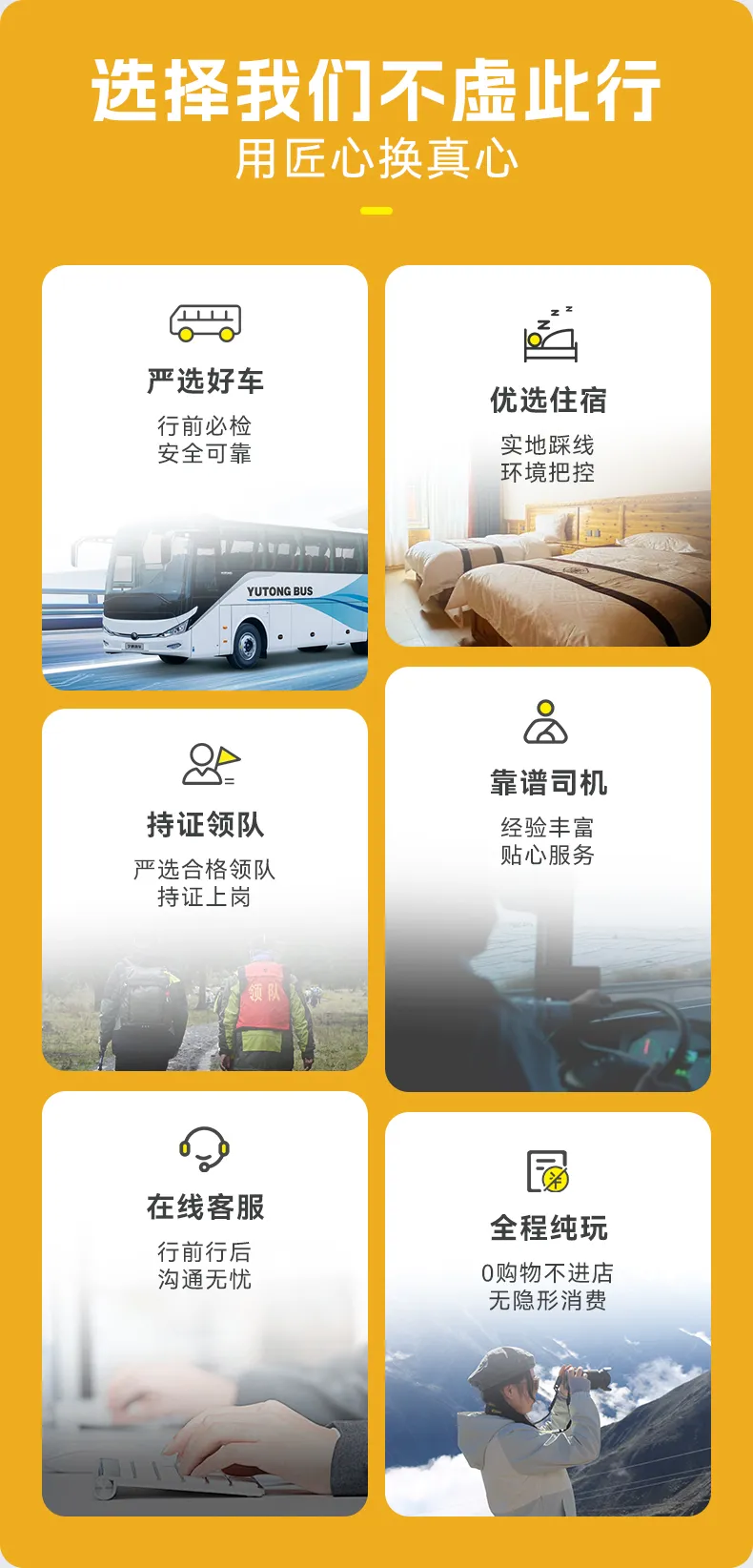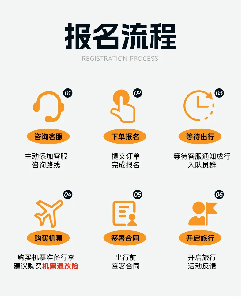5.在买卖交易方面,我们不是购物团,行程期间如果想购买地方特色或纪念物全凭个人喜好自愿,我们组织方不参与任何利益交换活动,但同时也提醒大家在购买时要确认好是否价物合理,造成个人损失将由消费者自行承担。