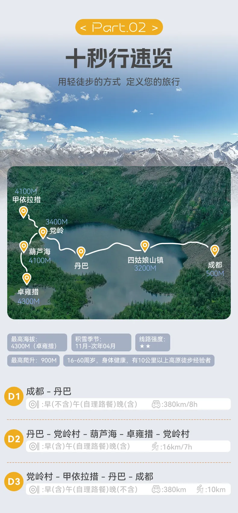 15.本次活动全线为高海拔地区,经过海拔最高为4300M,平均海拔在3500M左右,请正确评估自己的身体情况做正确评估,以决定参加与否。