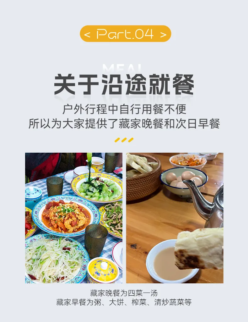 3.西部地区旅行有很多与你在繁华都市不一样的体验,在这些原始的地带,交通、医疗、餐食、硬件都是无法和城市环境相比拟,有不一样的风俗习惯和饮食差异所有请做好自己的心理建设,当然我们选择这样一段旅途,也能给你不一样的收获和体验。