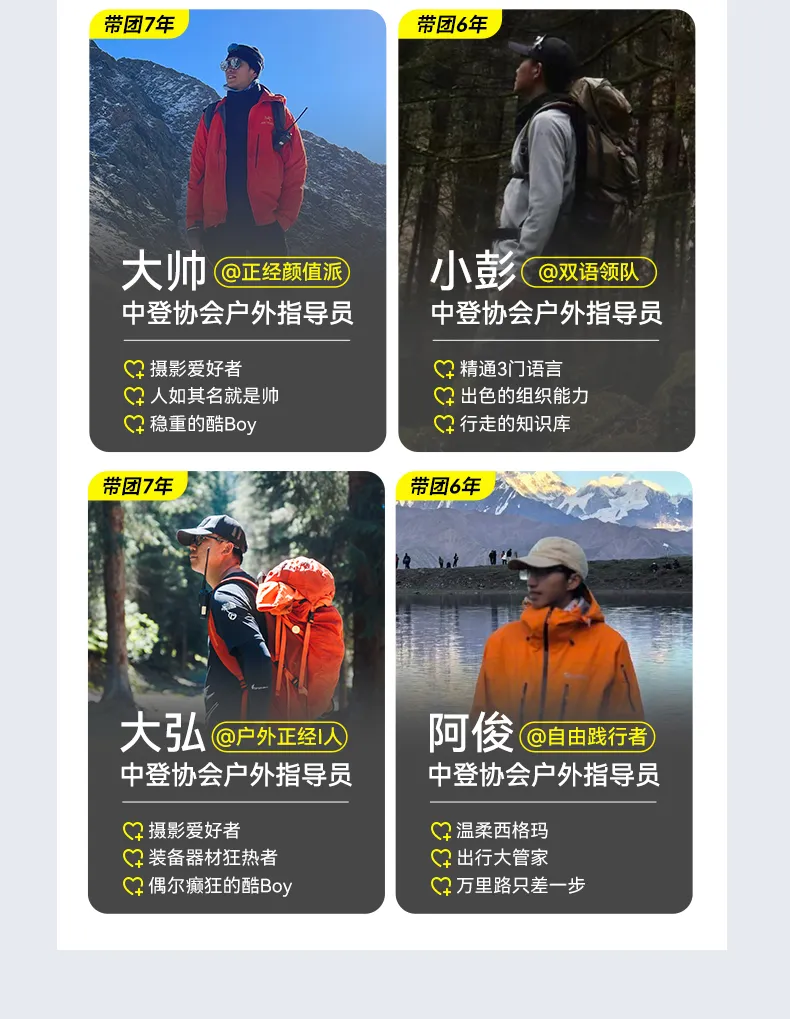 7.具有团队精神,在保护个人利益的同时也要兼顾团队利益,不能因个人喜好而随意要求改变原定行程,不能将个人情绪扩大化,如有需要领队或队员协助处理的可私下找到沟通,发扬传统美德,部分时候优先考虑年长年幼及女性。