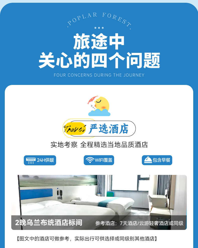 3、住宿:全程2晚乌兰布统当地酒店标间(连住2晚)